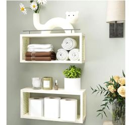 16" Floating Shelves with Hand-Woven Rattan Sides and Bottom, Set of 2$15Maywood, IL