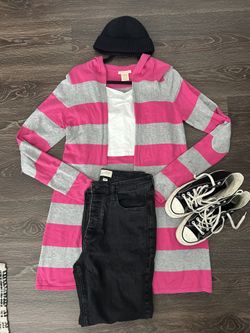 Pink & Gray Striped Longline Hoodie Cardigan $8Ontario, CA