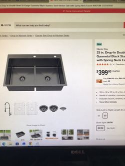 Glacier Bay 33in.Drop-on Double Bowl 18-Gauge Gunmetal Black Stainless Steel Kitchen Sink with Spring Neck Faucet $240Rancho Cucamonga, CA