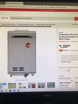 Rheem Performance 9.5GPM Smart Non-Condescending Outdoor Natural Gas Tankless Water Heater$750Rancho Cucamonga, CA