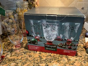 Etched & Handpainted Winterberry Water Goblets Holiday Christmas - 🎄 Glassware Set Of 3 - After Christmas Off-Season Special Price$5Miramar, FL