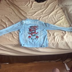 Clean Jean Jacket With Roses And Dragon Design$40San Antonio, TX