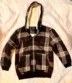 ELEVANI Boy’s blue and gray plaid coat with fur on inside, size 12$15Pembroke Pines, FL