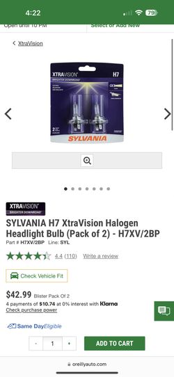 SYLVANIA H7 XtraVision Halogen Headlight Bulb (Pack of 2) - H7XV/2BP$25Alta Loma, CA