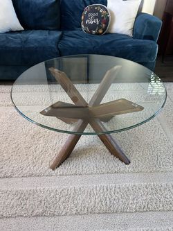 Pier One 36” Diameter Glass Coffee Table With Walnut Stand$150Elk Grove, CA