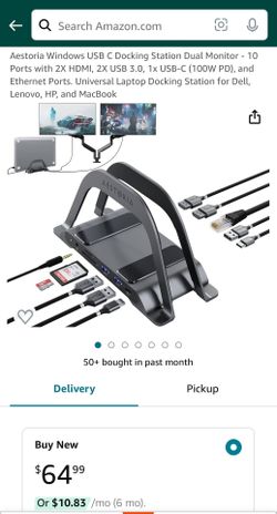Windows Laptop Docking Station Dual Monitor - 10 Ports with 2X HDMI, 2X USB 3.0, 1x USB-C (100W PD), and Ethernet Ports$35Boston, MA