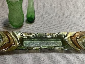 Green Glass Vase & Decorative Tray$10Greendale, WI