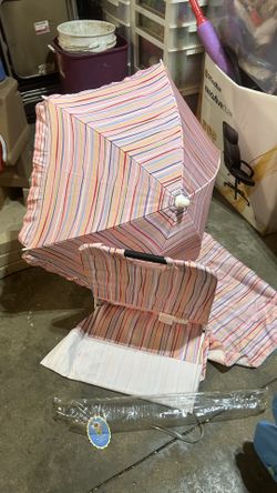 Like new kids beach yard chair and umbrella pink with stripes design$8Sycamore, IL