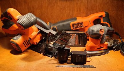 BLACK DECKER 20V CORDLESS BDCR20 RECIPROCATING SAW BDCCS20 + CIRCULAR SAW + BATTERY AND CHARGER + BLACK & DECKER CORDED MOUSE/DETAIL SANDER BDEMS600$90Gilbert, AZ