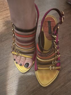 Authentic Louis Vuitton Multicolor Calf Hair & Patent Leather Tupelo Buckle Slingback Heels Sz 37 $380 Obo$380Dallas, TX