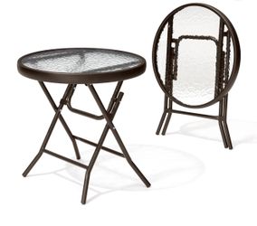Foldable Patio Side Table with Tempered Glass Top – Brown- New $40San Diego, CA