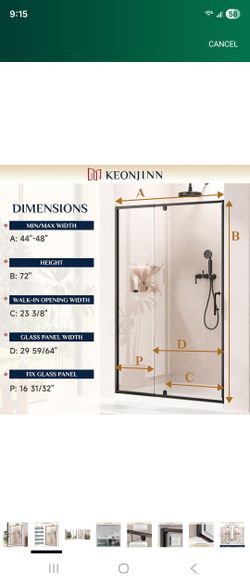 Brand New Pivot Shower Door, 44-48" W x 72" H Semi-Frameless$350Glendora, CA