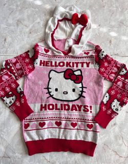 Hello Kitty Holiday Festive Girls Hooded Ears Sweater Sz Large$20Houston, TX