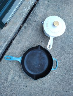 Vintage Cuisinart 2 Quart White Enameled Cast Iron Saucepan and skillet w/Lid$50Lewisville, TX
