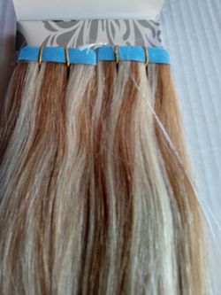 Tape In Human Hair Extensions 18" Long #27/613 Toasted Blonde With Blonde Highlights $120Downey, CA