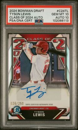 2024 BOWMAN DRAFT CLASS OF 2024 AUTOGRAPHS #C24TL TYSON LEWIS Psa 10 10 Pop 1$800Monrovia, CA