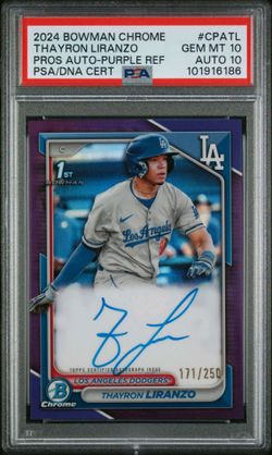 2024 BOWMAN CHROME THAYRON LIRANZO PROS AUTO-PURPLE REFRAC /250 DUAL 10'S pop 1$1,500Monrovia, CA