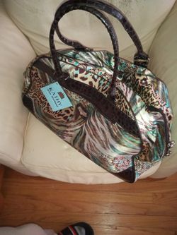 Kathy Van Zeeland Duffle Bag Weekender Rolling Wheeled Animal Print Feather Aqua$75Chicago, IL