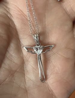 Angel wings Heart 🤍 CZ cross necklace$69Temecula, CA