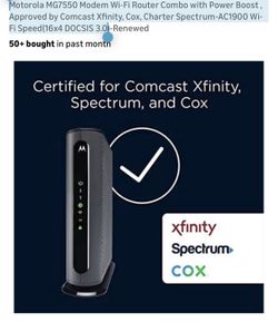 Motorola MG7550 Modem Wi-Fi Router Combo with Power Boost , Approved by Comcast Xfinity, Cox, Charter Spectrum-AC1900 Wi-Fi Speed(16x4 DOCSIS 3.0$40Santa Ana, CA