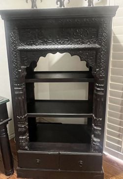 Dark Fausto Palanco solid wood cabinet. Great condition!!! Carved and drawers on both sides. $300San Dimas, CA