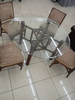 Mcguire Style Bamboo Round Glass Dining Table 4 Chairs$500Murrieta, CA