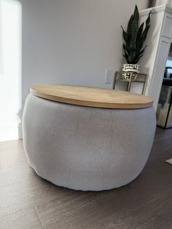 Modern Round Storage Ottoman With Wooden Lid, Circle $65Los Angeles, CA