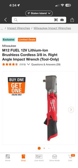MILWAUKEE M12 Fuel 12V Lithium-Ion Brushless Cordless 3/8 In. Right Angle Impact Wrench (Tool Only)$230Staten Island, NY