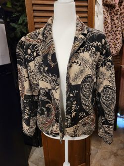 In bordered rose pleather jacket L $20Seattle, WA