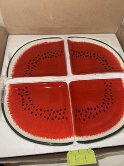 ceramic watermelon-shaped plates that form a round platter$10Houston, TX