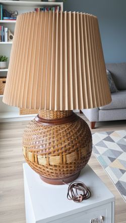 Boho Chic Large Vintage MCM Ceramic Table Lamp in Rattan/Wicker Carvings Heavy$249Grand Terrace, CA