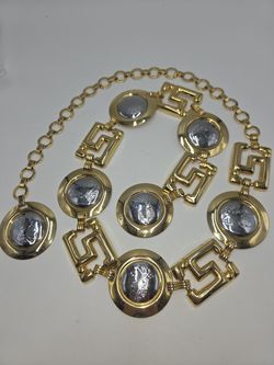 90s Yellow Gold-Tone Medallion Statement Belt with Silver Accents Vintage$49Grand Terrace, CA