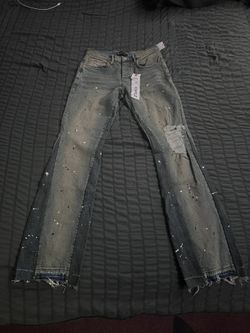 Purple Brand P004 Mid Indigo Paint Splatter Flared Jeans$125New York, NY