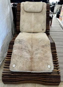 Sculptural Solid Acacia Chaise Lounge – Genuine Hair-on Cowhide – Boutique Piece ($2310 Retail)$1,440Las Vegas, NV