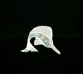 1.4" x 1.4" Solid Sterling Silver Abalone Inlay Sailfish Pin Brooch, Taxco $19Columbia, SC
