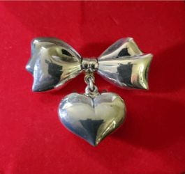 44.5mm x 41mm Solid Sterling Silver 3-D Modernist Heart Ribbon Brooch Pin. Mint!$29Columbia, SC