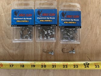 60 Eagle Claw Unpainted round jig Heads, Szs 1/32, 1/16, 1/8 oz, Bass, Trout, Crappie, Perch Fishing Lures$12Alhambra, CA