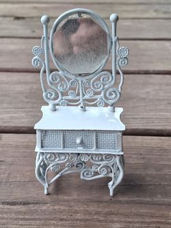 1/12 Scale Vintage White Metal Ornate Scrolled Vanity Dollhouse Diorama$35Due West, SC