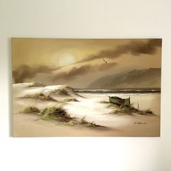 K. Wilson Beach Boat Painting (Gold, Brown, Tan, Green) 24” x 36”$50Mentor, OH