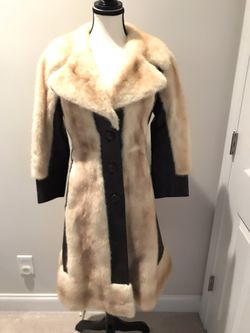 Vintage Womens 1970s MOD Style Saga Real Mink Fur & Leather Knee Length Coat S $375Mentor, OH