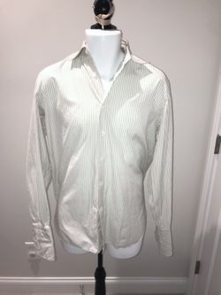 Mens Ermenegildo Zegna Button Up Shirt L Cream & Grey Vertical Stripe French Cuff$25Mentor, OH