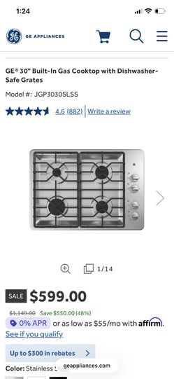 GE® 30" Built-In Gas Cooktop with Dishwasher-Safe Grates$500Houston, TX