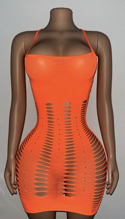 {EXOTIC DANCE/ CLUB/ RAVE WEAR}: ORANGE 1 PIECE DRESS WITH RHINESTONES $30Houston, TX