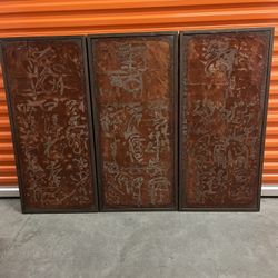 Antique Chinese Lacquered Decorative Panels Screens w/ Gilded Calligraphy Set of 3$500Los Angeles, CA