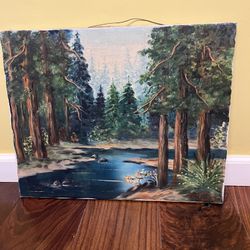 Redwood Trees In The Deep Forest Painting Signed Mary Ann Dillon 1976 20"x16.5"$100Los Angeles, CA