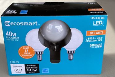 Ecosmart 40W LED B11 Round Bulb, Candelabra Base 3pk$5Virginia Beach, VA