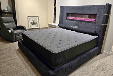 BLACK Velvet FIREPLACE BED ποΈ π₯ποΈπ₯ Tall Headboard$799Miami, FL