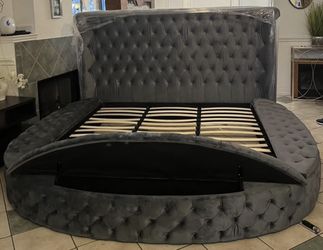 ROUND BED in Grey W/ Storage All Around β