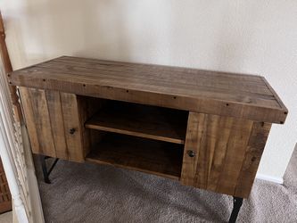 Rustic Wood Sofa Table with Solid Wood Top, Two Cabinets, And Open Center Shelving$280San Diego, CA