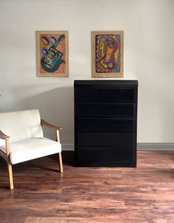 Vintage Black Lacquer Waterfall 5-Drawer Dresser – 1980s Modern Glam$140Miami, FL
